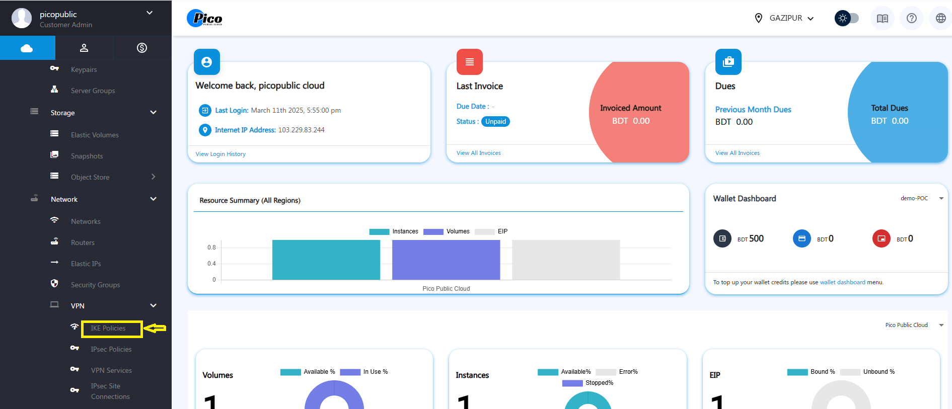 Used to define Phase 1 settings of IPsec VPN (IKE version, encryption, hashing, authentication methods, DH group, lifetime, etc.). At first we have to click VPN and then IKE Policies then create the IKE Policies.